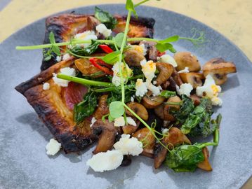 Potato, zucchini, red capsicum, and onion fried in our Paprika butter served on our house made bread with a poached egg.